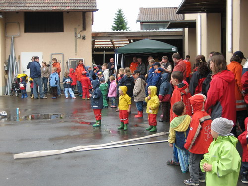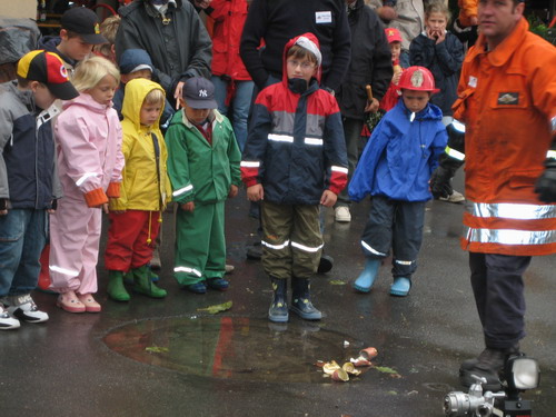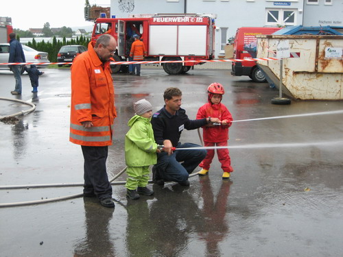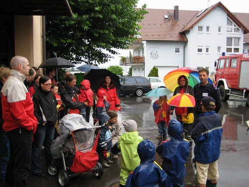 Am Sonntag, 13. August um 11:00 Uhr war es wieder einmal soweit, die Freiwillige Feuerwehr hatte die Kinder zum Brandschutz-Infotag im Rahmen der Kinderaktionstage eingeladen. Trotz des regnerischen Wetters fanden sich um die 50 Kinder und ihre Eltern und Großeltern am Gerätehaus in der Häfelishofstraße ein. Kommandant Andreas Schlegel begrüßte alle Gäste ganz herzlich und stellte die Feuerwehr und Ihre Aufgaben kurz vor. Bei den Aufgaben der Feuerwehr spielen die Brandeinsätze eine untergeordnete Rolle, erläuterte Kommandant Schlegel, im Jahresdurchschnitt machen sie nur ungefähr 20 Prozent aus.