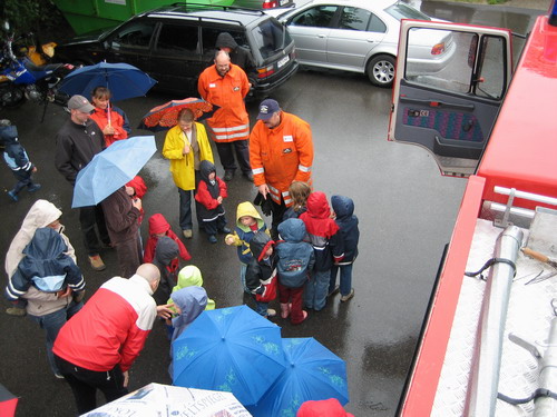 Die Kinder hatten dann im Anschluß die Gelegenheit die Feuerwehrfahrzeuge unter die Lupe zu nehmen. Die