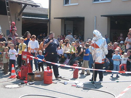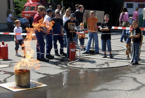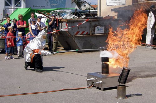 echtes Feuer am so genannten Löschtrainer. Außerdem erklärten