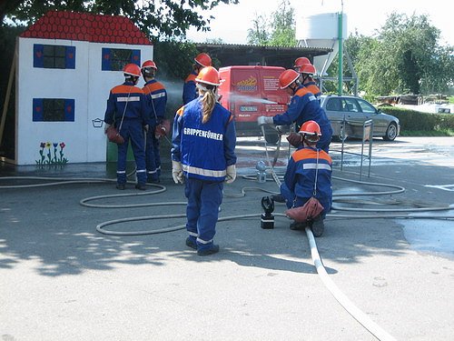 die Jugendfeuerwehr rückte zum Löscheinsatz an in die Häfelishofstraße