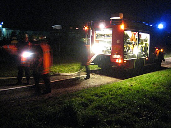 Da der nächste Hydrant ca. 250m von der Einsatzstelle entfernt lag kümmerte sich die dritte Gruppe mit Gruppenführer Karl Geisert um die Wasserversorgung und verlegte 15 B-Schläuche (15m oder 20m) bis zum ersten Löschfahrzeug um die Wasserversorgung zu sichern. Um die Einsatzstelle auszuleuchten wurden zwei Lichtmasten errichtet und jeweils mit Stromaggregaten mehrere Strahler betrieben.