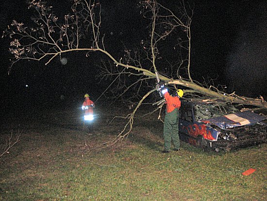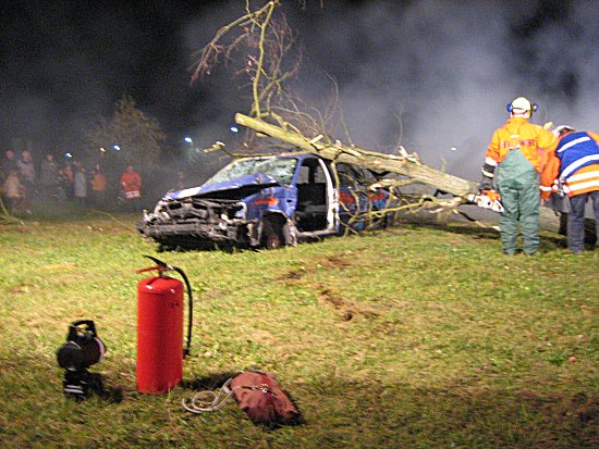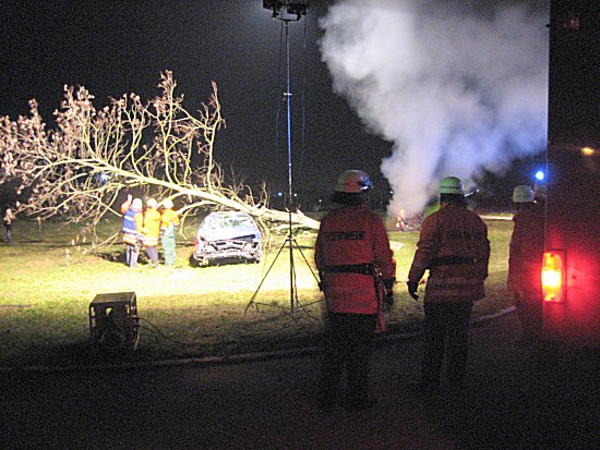 Am Freitagabend, 01. Dezember 2006, zieht ein schweres Gewitter mit starken Windböen über die Insel Reichenau. Ein Baum stürzt durch eine Windböe um, direkt auf ein geparktes Auto. Durch Blitzeinschlag kommt es zu einem Flächenbrand. So das Übungsszenario bei der Jahresabschlussübung der Freiwilligen Feuerwehr Reichenau.