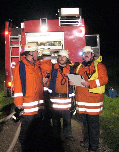 Bei der anschließenden Übungsabschlussbesprechung im Gerätehaus lobte Kommandant Andreas Schlegel den Übungsablauf. In diesem Jahr sollte es mal etwas anderes sein wie immer nur Menschenrettung aus einem Gebäude. Als Beobachter beurteilte er den Übungsablauf als hoch konzentriert und professionell, alles lief reibungslos und diszipliniert ab. Zur Stärkung konnte er alle Einsatzkräfte zu einem Imbiss und Getränken einladen.