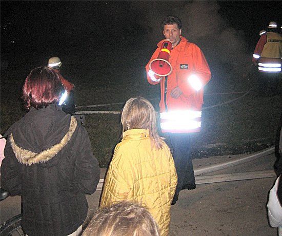 Etliche interessierte Zuschauer verfolgten interessiert den Übungsverlauf. Unter Ihnen befand sich auch Bürgermeister Volker Steffens. Dabei kommentierte Kommandant Andreas Schlegel die einzelnen Stufen und Maßnahmen des Übungseinsatzes um den Zuschauern einen Einblick in die Feuerwehrarbeit zu geben.