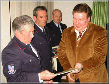 Bürgermeister Steffens sprach nochmals den Dank der Gemeinde für die geleisteten Einsatzstunden aus. Er konnte erfreuliches berichten, so sind die geplanten Beschaffungen im Haushaltsplan 2005, trotz angespannter Finanzen, alle genehmigt. Es mußte lediglich die Beschaffung eines Mehrzweckbootes (ca. 35.000 EUR) zurückgestellt werden. Außerdem signalisierte er, daß auch in Zukunft die Finanzierung, der für die Sicherheit wichtigen Ausbildungen, sicher gestellt ist. Und die Gemeinde übernimmt die Kosten für die Nachuntersuchungen für Maschinisten bei der Verlängerung der Fahrerlaubnis für Schwerlastwagen (Führerschein Klasse CE) und gibt einen Zuschuß in Höhe 1.000 EUR für Führerscheinneulinge, die für die Feuerwehr den Führerschein absolvieren.