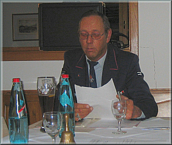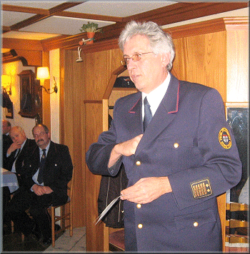 Wegen Krankheit konnte die Ehrung an der Versammlung nicht stattfinden und wurde auf einen späteren Zeitpunkt verschoben. Das goldene Feuerwehrehrenzeichen, das Präsent der Feuerwehr und der Gemeinde wird ihm dann übergeben.