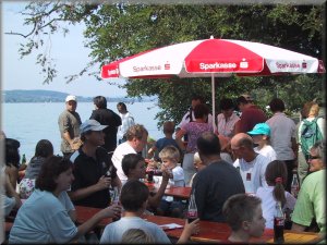 Im Anschluß konnten sich die Kinder bei Bratwurst und Getränk stärken. Am Ende wurde den Kindern noch eine kleine Überraschung überreicht und das Feuerlöschboot verabschiedete sich auf dem See mit riesigen Wasserfontänen.