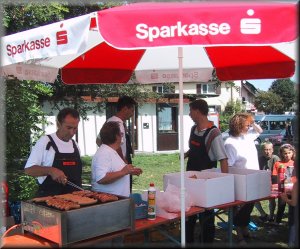 Am Grill mit wohlduftenden Bratwürsten unser bewährter Grillmeister Berno Riebel unterstützt von seinem Team Johanna Riebel, Martin Blum, Andreas Schlegel und Martina Baumgartner |