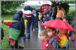 Kommandant Karl Huber begrüßt alle anwesenden Kinder mit Ihren Eltern und dankt allen, daß sie trotz des schlechten Wetters zu uns gefunden haben.