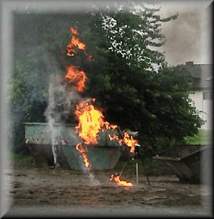 Die Spraydosenkanone ist geladen.... Die durch Hitzeeinwirkung, kontrolliert, zur Explosion gebrachten Spraydosen flogen an die 50m in die Luft.... ein Bombe im Haushalt, an die die meisten nicht denken. |