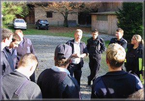 Die UTM-Koordinaten "NT04499038" brachten alle Teilnehmer nach "Hof Höfen" zur Kaffeepause, Ausbilder Helge Hamann freut sich, daß alle den Einsatzort gefunden haben.