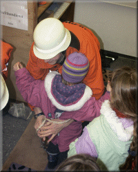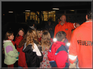 Zum Abschluß erklärt Kommandant Karl Huber den Kindern den gesamten Übungsablauf und gibt wertvolle Tips zum Verhalten im Ernstfall. |