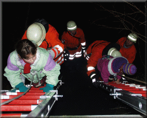 ...jeder Schüler wurde mittels Feuerwehr-Rettungsleine gesichert.