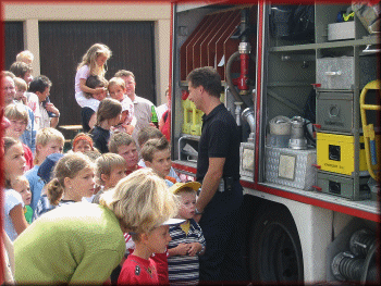 "Neben dem Fahrzeug antreten..." hier wird die "Kinder"-Löschgruppe in Reih und Glied aufgestellt.