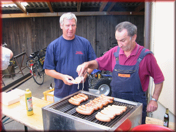 Das Grillteam Berno Riebel (rechts) und Bernhard Graf (links) erwartet die jungen Gäste schon...