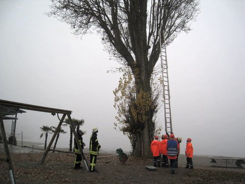 "Tierrettung" alarmiert. Ein Kleintier war auf einer Pappel am Campingplatz