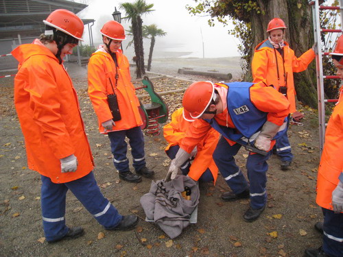 brauste los. Am Einsatzort fanden Sie einen Gärtner (Übungspuppe "Egon") vor,