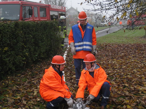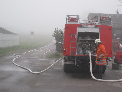 LF 8/6 zum ca. 300m entfernten LF16 als Wasserförderung über lange Wegstrecken.
