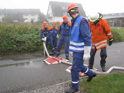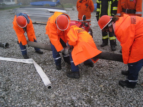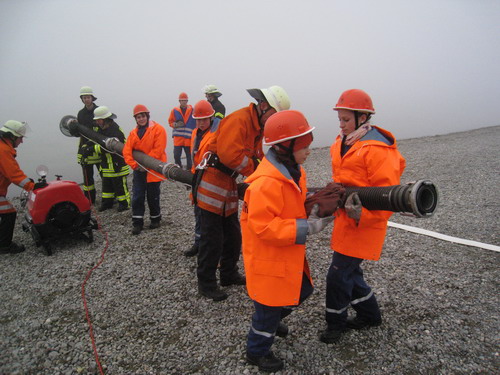 Insgesamt wurde mit insgesamt 27 B-Schläuchen, Feuerwehrkreiselpumpen LF16 und