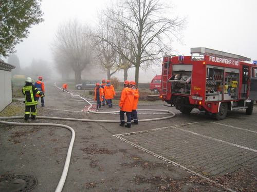 Übungseinsatz mit zwei Löschfahrzeugen (LF8/6 und LF16) und Mannschaftswagen