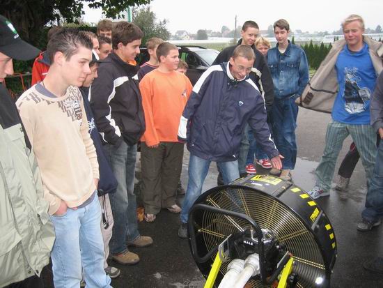 Die Jugendlichen hatten im Anschluß Gelegenheit sich über die Feuerwehr zu informieren, aber auch aktiv die verschiedenen Gerätschaften auszuprobieren. Die neuen Jugendgruppenleiter und die Stellv. Kommandanten Johannes Deggelmann und Thomas Baumgartner waren für die vielen Fragen der Jugendlichen zur Stelle. Im Gerätehaus konnte man eine Multimedia Show von den Einsätzen der Wehr verfolgen und manch einer nutzte die Gelegenheit einer Probefahrt von Gerätewart Bernfried Streibert mit einem der Löschfahrzeuge. Außerdem wurden die Anwesenden von den Kommandanten-Frauen mit Getränken, Kaffee und selbstgebackenem Kuchen verwöhnt.